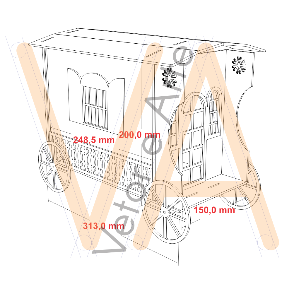 Vetor projetado para Máquinas Laser com uma área mínima de corte de 320mm x 203mm e utilizando como material MDF 03mm.